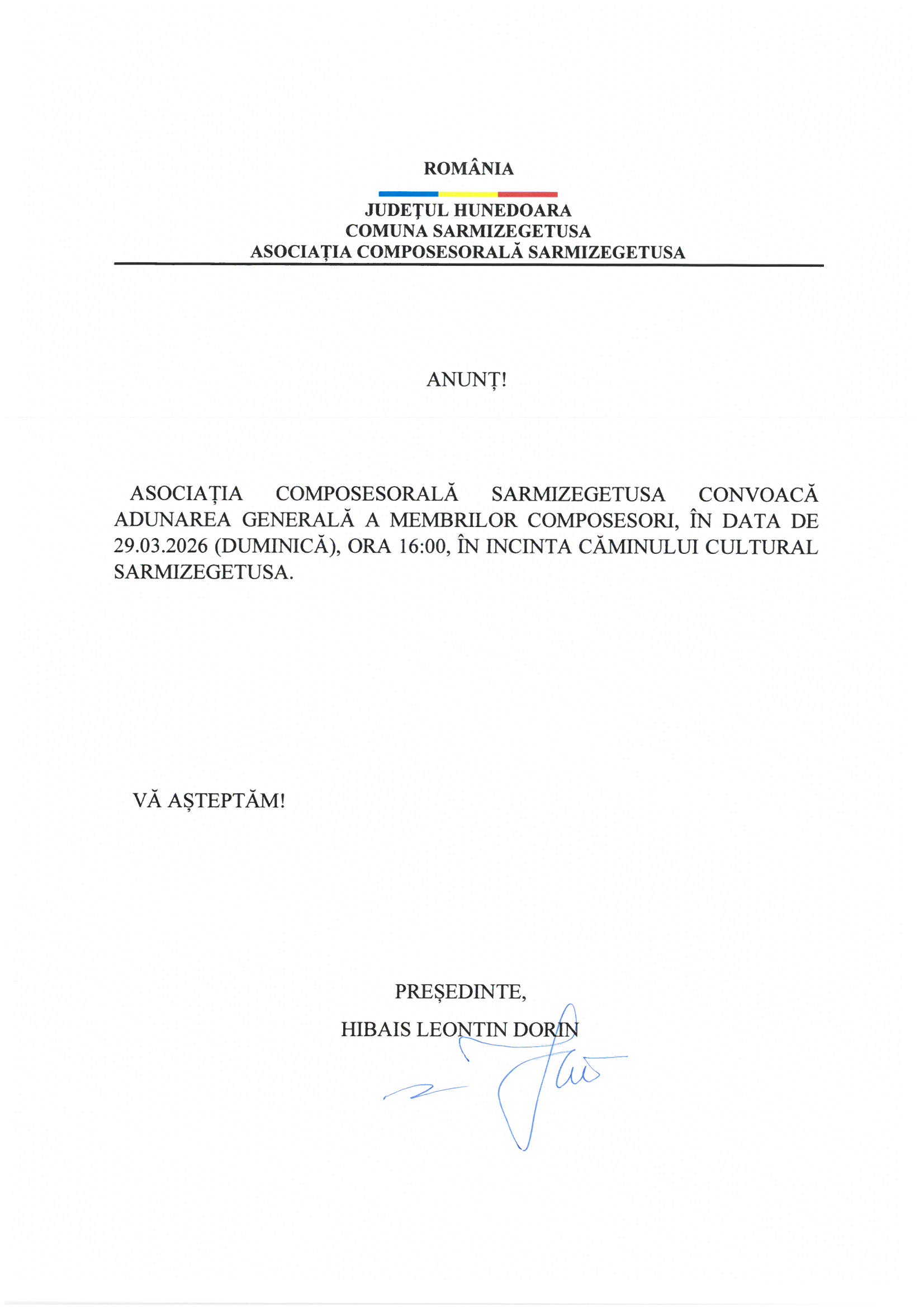 • Anunțuri de convocare